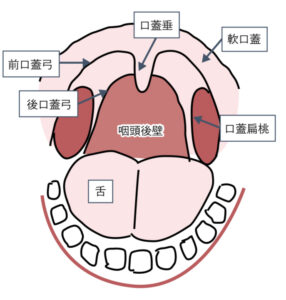 | 嚥下困難 | 咽頭後壁の炎症により咽頭が狭くなる |
