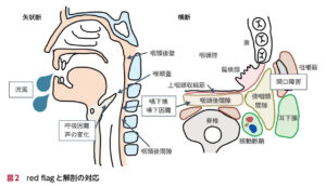 | ①急性喉頭蓋炎 | 嚥下困難、muffled voice、舌骨部の圧痛 | 高圧X線、血液培養 |