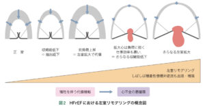 病態 左室肥大などで左室が硬く拡張しないため左室内腔が狭く、LVEFが保たれていても実際の駆出量は少ないため心不全となる。