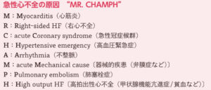 急激な心機能低下症による急性心不全はACS、たこつぼ心筋症、全身疾患に伴う心抑制、心筋炎で多い