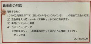 ※圧迫止血で止まらない場合、耳鼻咽喉科があればすぐそちらに紹介し、いなければ②へ