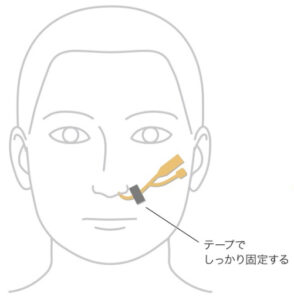 ③カテーテルを牽引して抜けなければ頬部にテープで固定して前方パッキングを追加