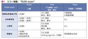| 検査 | 【画像検査】 RUSHエコー:特にIVC虚脱があれば血管透過性亢進による体液減少を疑う |