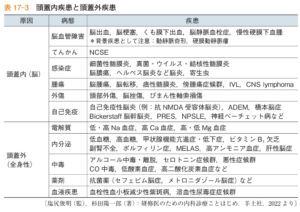 | ③脳症 | てんかん、代謝性、電解質異常、薬剤性、中毒 |