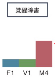 | 覚醒 | 起きている状態。覚醒は脳幹にある上行性網様体賦活系(ARAS)から視床を介して大脳皮質に投影する神経経路が担っている。 | Eに該当 |