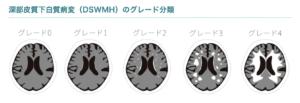 慢性虚血性変化(大脳白質病変)はMRIでは、FLAIR像やT2強調像において、高信号になるのが特徴。一般的に無症状だが、程度が強くなると認知機能低下や下肢機能低下が出てくる場合がある。