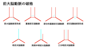 | 前大脳脳脈 | 【正常変異】 1本の場合もあれば、3本の場合もある。窓形成をする場合もある。 【A1の低形成】![]() |