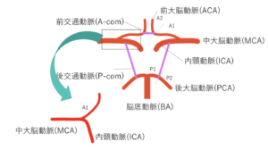 | ICAより直接分岐→ | 後交通動脈(Pcom) | ウイリス動脈輪 |