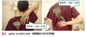 病態 鍵板障害による肩関節の可動域制限が起こる疾患。特に、挙上と内旋が制限される。