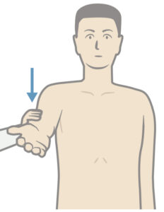 | 症状 | ①肩関節痛、肩関節周囲の発赤腫張 ②患側上肢の神経障害:肩の外側の知覚低下・外転筋力障害(腋窩神経障害) |