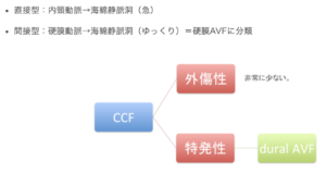 | 分類 | 直接型CCFは外傷性と特発性に分けられるが外傷性は稀(間接型CCFは硬膜AVFを参照)![]() |