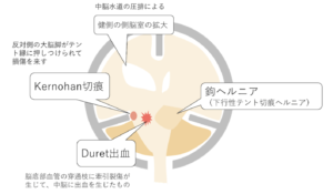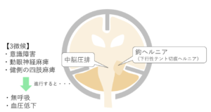 | 上行性ヘルニア※ | 小脳が上行し中脳を圧迫 | ↓ |