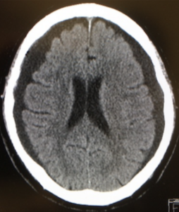 | 検査 | 【画像検査】 CT:明らかな頭蓋内損傷は認めない MRI:FLAIR像で脳梁・上小脳脚・脳幹の白質に小さな高信号領域の散在 |