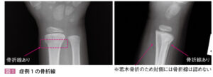 小児の場合は若木骨折を疑う(左右確認)