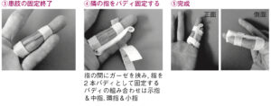 ⑤PIP関節を軽度屈曲位にしてバディテープ固定し、後日整形再診にして終了![]() |