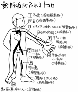 | 末梢循環の評価 | ①末梢動脈の拍動確認:脈拍の減弱や消失は阻血の可能性![]() |